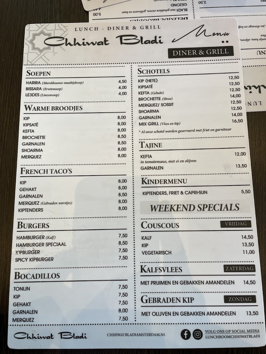 Welcome to Croissanerie Chhiwat Bladi, a hidden gem nestled in the vibrant streets of Amsterdam. Known for its authentic Moroccan cuisine, this eatery promises a delightful journey for your taste buds. The menu shines with offerings that are perfect for breakfast or brunch, including refreshing bissara (a hearty fava bean soup) and traditional Moroccan green tea infused with fresh mint, referred to as attai.